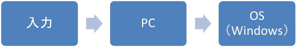 通常、キーボードやマウスからの「入力」は「PC」を通して「OS」(またはアプリケーション)に渡されます。
