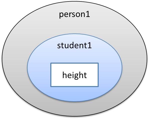データメンバ「height」は「person1」の名前空間の下にある「student1」の名前空間内にあります。