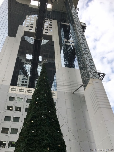 会場のスカイビルに行くのも4年ぶりくらいになります。広場ではクリスマスツリーの設置が始まっていました。