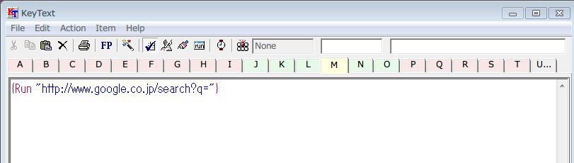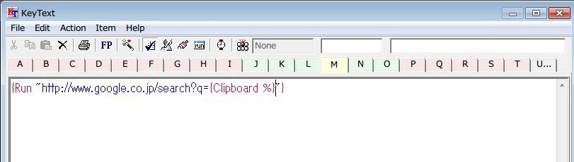 このままでは、Googleの検索サイトが表示されるだけですので、クリップボードに取り込んだ文字列を検索できるようにします。