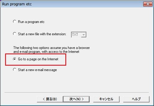 3. [Go to a page on the Internet]ラジオボタンを選択して、[次へ]をクリックします。