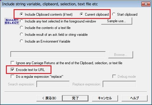 7. 上図のようにラジオボタンを選択し、[Encode text for URL]のチェックボックスを選択します。