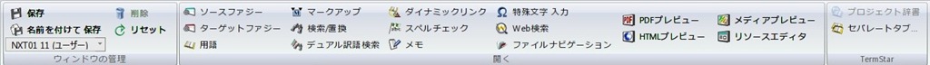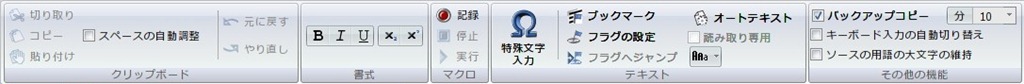 上部にあるメニューを選択すると、MS-Office2007以降のリボンのような、次の各リボンが表示されます。