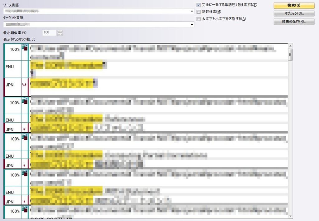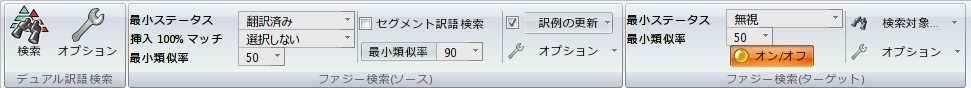 - ソースファジーウィンドウ:ファジーマッチが表示されます。ターゲットファジーもあります。