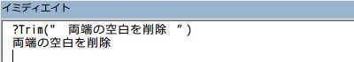Trim(" 両端の空白を削除 ”) ⇒ 「両端の空白を削除」が戻り値