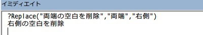 Replace("両端の空白を削除","両端","右側") ⇒ 「右側の空白を削除」が戻り値